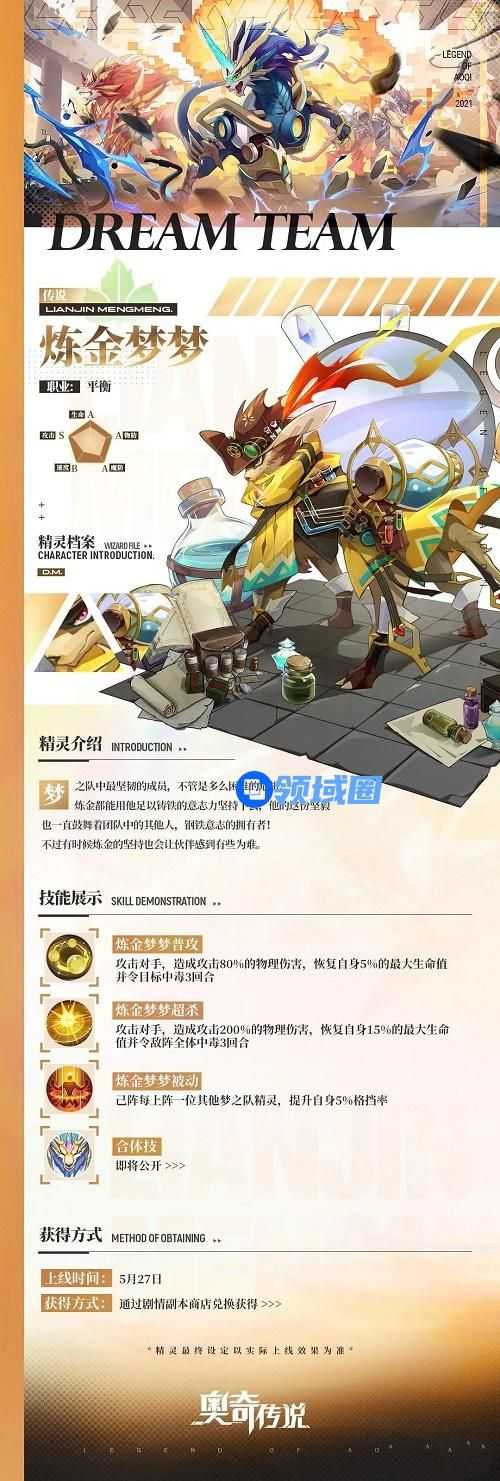 获得方式:通过「梦之队启航」限定卡池获取,梦之队成员占限定卡池传说精灵获得率61%,120次召唤保底获得热血梦梦,卡池开放期间可通过活动获得累计120张神唤券