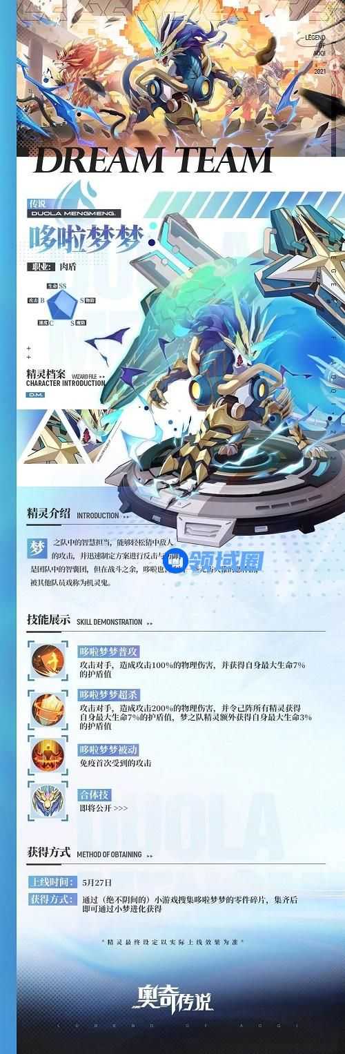 哆啦梦梦拥有智慧的大脑,他的机智和勇敢能让他保护队友和反击敌人。