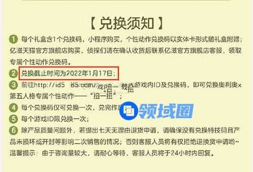 然后这个兑换的截至时间就是2022年1月17日,也就是还有大半年的时间都有效果,这个对于很多玩家来说时间还是很充足的,不用担心无法上车的尴尬。