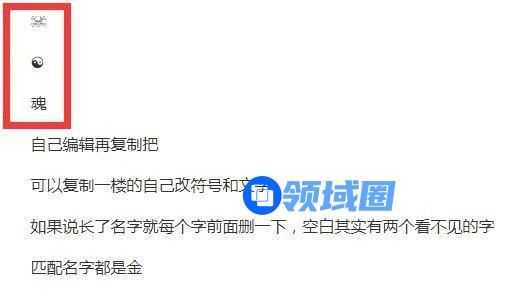当然还有一种更简单的方法,就是直接去复制人家在网上取好的格式名称,到时候进游戏当中,把他的名字改掉即可。竖立名字的格式没有变,这样就可以调换出自己喜欢的名称,比如说下面这张图就说的很清楚,直接去复制就可以了,就能取出心中想要的名字,还是非常简单的。