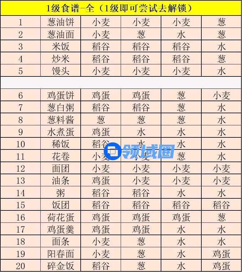 上面的图示内容就是食谱配方和酒谱配方了,大家如果需要可以保存图片到手机中哦。