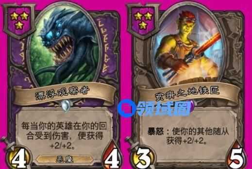 漂浮观察者,人称小绿。就自残术那点本事,要不是酒馆战棋,它估计要隐姓埋名一辈子。正是因为它是天梯卡,所以不好削身材,只能改星数,于是3星太强、4星太弱,最后只能移除喽。贫瘠之地铁匠,拉大先后手差距的帮凶,即使是极盛时期的野猪人也掩盖不住它的光芒。