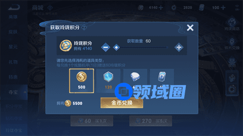 60玲珑积分是500金币,五连抽需要270积分,也就是说我们需要购买180次也就是90000金币。
