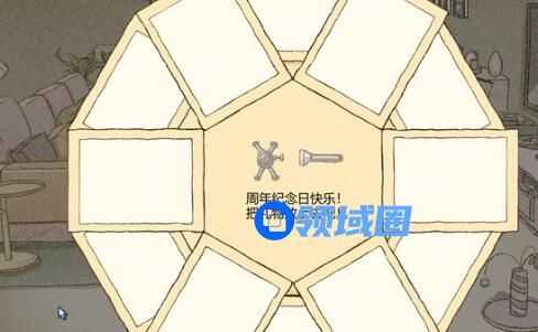5.冰箱上面可以看到钥匙,是可以打开铁盒的,然后找到笔去阳台把心连起来,墙上可以得到项链,洗衣机那边有纸条,然后去客厅找到客厅的礼物盒;
