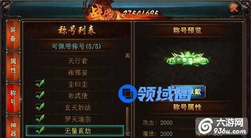 获得称号后,佩戴称号可以获得大量属性