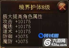 境界说明:升级境界可以提升境界等级且获得境界Buff属性;升级境界需要消耗修为值,使用修为丹可以获得大量修为值;