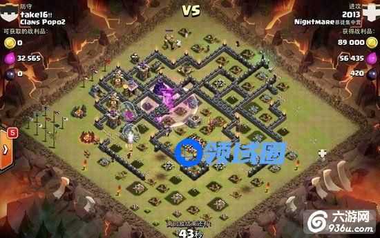 6、之前因为药水的原因加上双王级别也高就一直没有开技能,这个时候接近尾声开技能把剩下的弩清掉,还有6个炸弹可以用来炸掉右上方靠里面的墙,方便剩下的兵去清掉那一块的防御加建筑物。