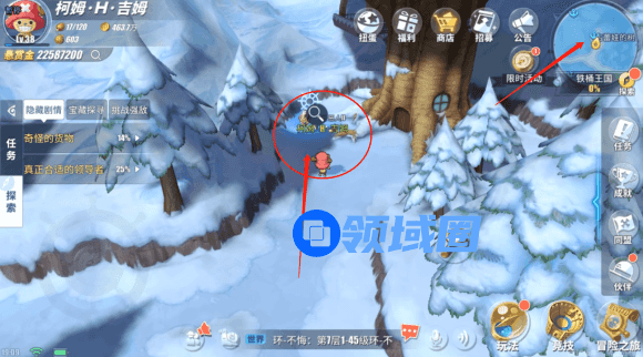 冬岛里比较特殊的树就是那个可以传送去城堡的那颗树附近,找到一个灰扑扑的蘑菇,返回拿去给商人康康。