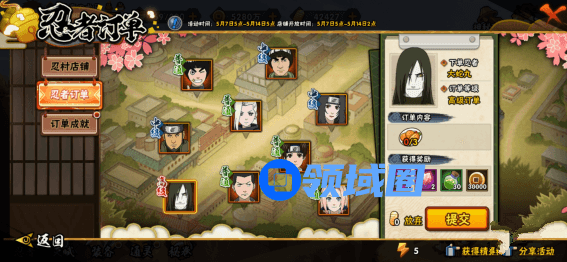 (2)、忍者订单:高级订单、中级订单、普通订单;不要问哪个奖励好,你就挑你缺的订,专业对口就好,优先完成订单成就里面的任务;