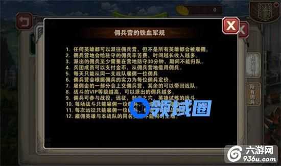 当你某些副本打不过的时候可以通过兵团的佣兵营地征召其他玩家的强力英雄来帮助你战斗,想想就很开心吧!