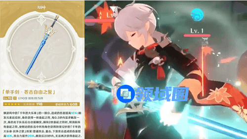 五星单手剑,苍古自由之誓,获取方式:神铸赋形限时产出。90级属性,主属性608攻击力,副属性198点元素精通。1精效果简述(满精极为各项增幅效果翻倍):角色造成伤害提升10%,触发元素反应后获得一层印记,每0.5秒至多叠加一层。叠满2层后将会清除印记,全队获得持续12秒的增益效果,普通攻击、重击、下落攻击伤害提高16%,攻击力提升20%。触发后20秒内无法获得新的印记。