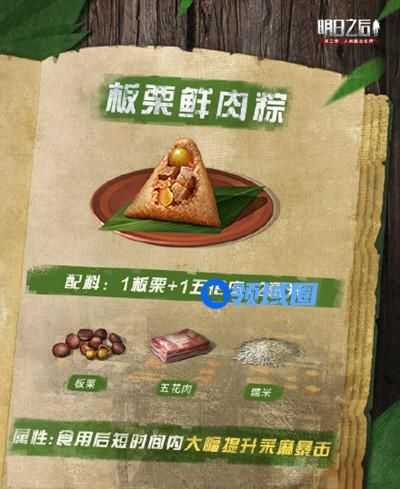 明日之后粽子怎么获得?在明日之后中开放了端午节活动后,有许多玩家都想要知道可以制作粽子的食谱配方都有哪些。接下来就让游戏宝小编为大家分享明日之后粽子食谱配方大全。