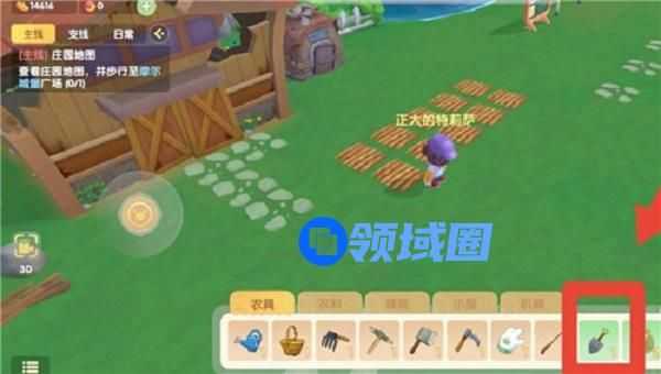 2、然后在工具栏找到农具,并在农具中找到小铲子。