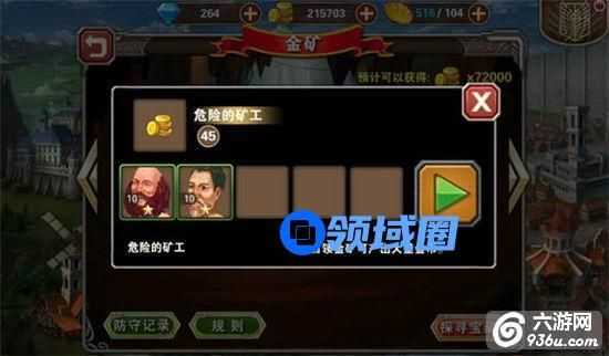当《进击的巨人2》在玩到游戏中后期的时候,是不是总是感觉钱不够花,英雄的技能根本没钱点,要不就是英雄等级提升太慢,经验药水根本不够用?每天地下宝藏那少的可怜的次数和产出是不是已经无法满足各位的需求了?壁外调查那每天一次的挑战机会也只饮鸩止渴了?不用担心,当队伍等级到达39级时,将会开启一个全新的宝库---危险的矿山!在这里,你将会有大大的收获!