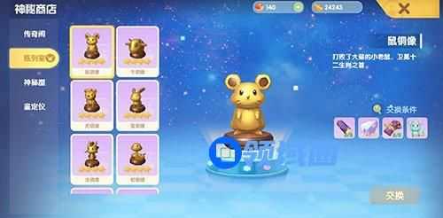 选择这个陈列室,再选择第一个鼠铜像,可以在最右边,看到交换条件就是20个冰淇淋鼠。