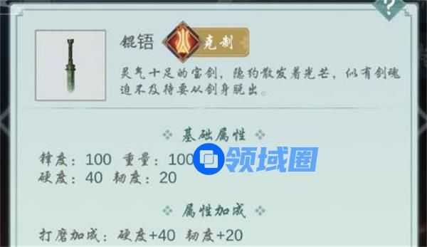 A、锟铻剑的基础锋度和基础重量各为100,且核心的专属词条为守横、器魄、重核;