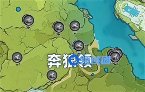 奔狼领的白铁矿分布较少,主要集中在东部靠近蒙德城的山脉上,具体位置如下:
