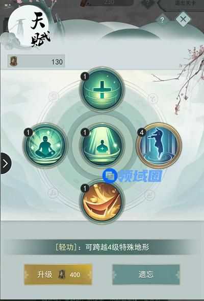 1、在天赋中找到轻功,各种特殊地形都要靠轻功,必点而且优先升级;
