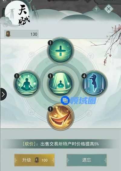 3、砍价和贸易是跑商天赋,升级后效果比较好;