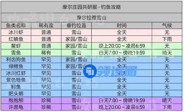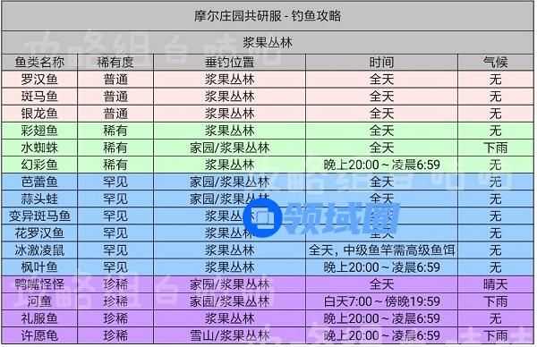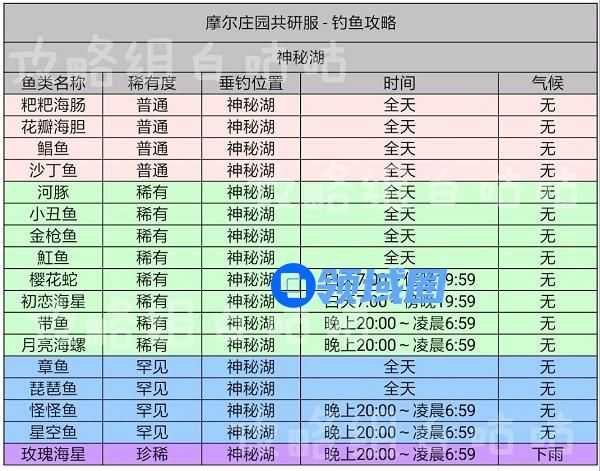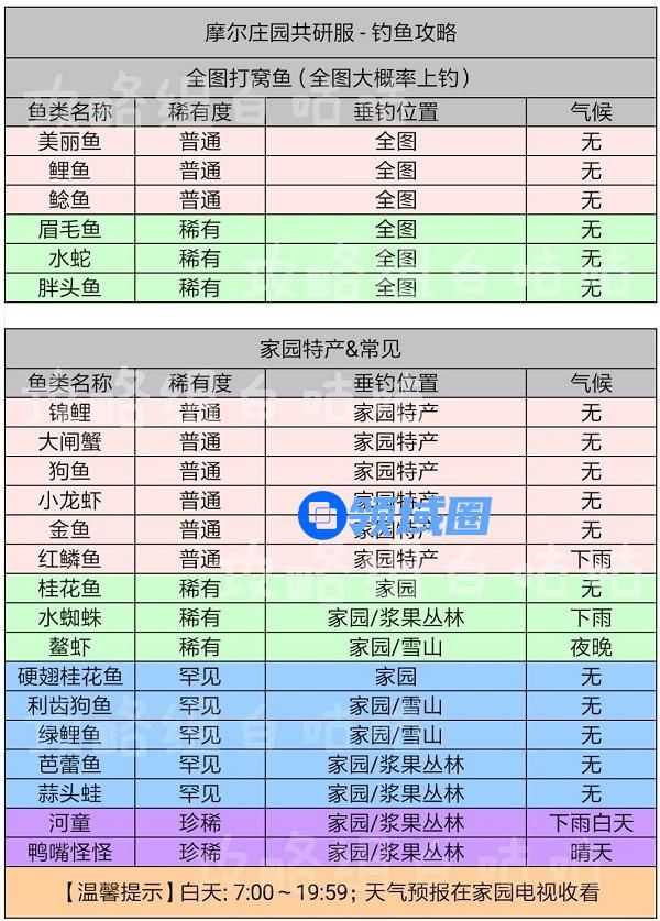 摩尔庄园手游鱼的出现时间及分布位置表格攻略
