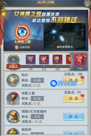 试炼点累计达到指定点数时,可领取对应的奖励。