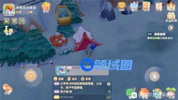 4、沿着雪山边缘走,靠近白色浆果的时候会出现菜篮子标志,就可以采摘了。