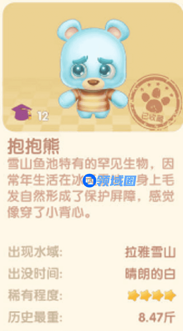 1、抱抱熊要在拉雅雪山里钓,只能在晴朗的白天钓到。