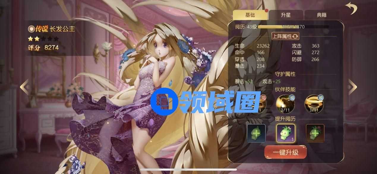 每升一星,伙伴的守护属性、出战属性也随之增加,主动和觉醒技能提升一级,同时也会解开一个典籍被动技能格子。