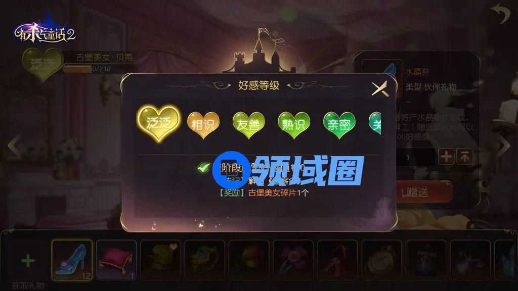 提到好感度就要提到在结缘时,我们除了抽到伙伴和魔法糖果外,还会抽到另一种奇特道具——伙伴礼物。在送礼页面,我们可以通过给伙伴送出礼物,来提升与伙伴之间的好感度。每次好感度升级,伙伴都会给与一定的奖励。