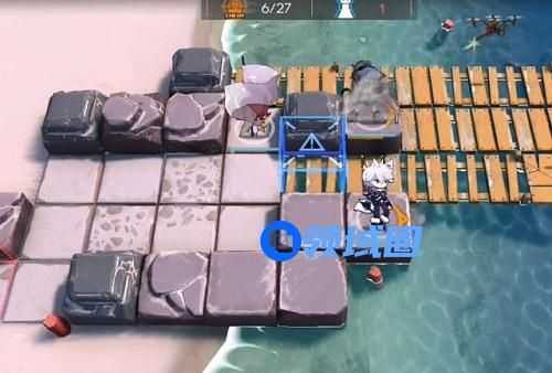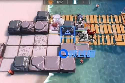 5、然后左下角再次部署孑高台在史都华德的背后落地克天使,冲左侧攻击,孑不用管,几个小源石虫不用担心,克天使能轻松补刀灭掉。
