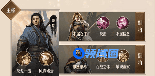 1、阵容推荐:主将项楚、副将不屈女王、副将弗德里希。