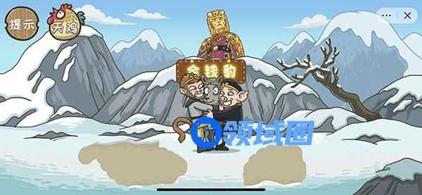 3、然后“钱”字就会亮,长按孙悟空和猪八戒的脚往中间拉。
