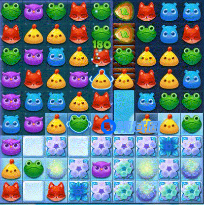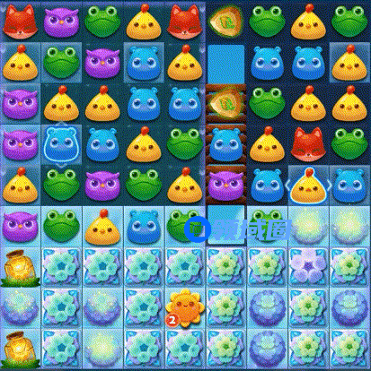1、第一步:爆炸特效交换消除雪块,借助魔法石激活花藤。