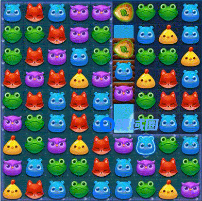 2、第二步:贴边三消或组合直线特效等,激活中间花藤。