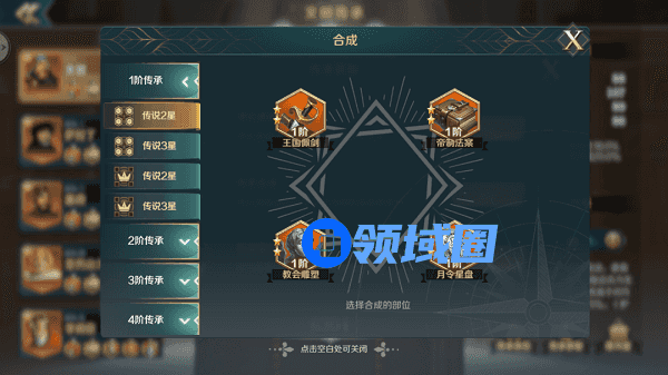 1、文明传承的星级越高其属性就越高,而想要提升文明传承星级则需要进行合成,文明传承合成很简单: