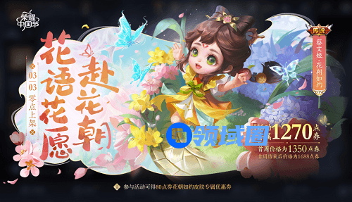 1、赴约花期,全新荣耀中国节系列皮肤蔡文姬-花朝如约即将上线!分享活动即可送80点券优惠卡。