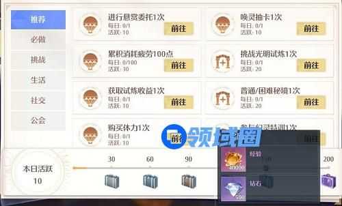 3、幻灵委托:幻灵委托任务等级在神话级别完成任务奖励可以获取100钻石。