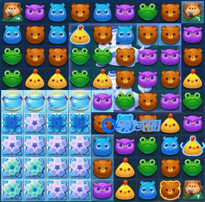 5、第四步:贴边消剩余雪块,救出被困小动物。