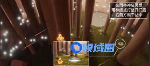 4、在雨林神庙冥想:在雨林神庙打坐开门后右前方树干从中的石碑前光圈处打坐并留言。