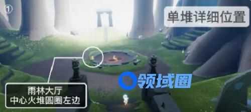 1、第一个蜡烛在雨林大厅,中心火堆圆圈左边。