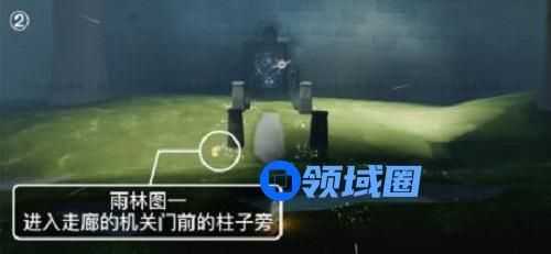 2、第二个蜡烛在雨林图一,进入走廊的机关门前的柱子旁边。