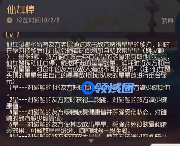 Lv1:仙女鼠可以通过丢星星来给己方buff,或者对猫方造成干扰