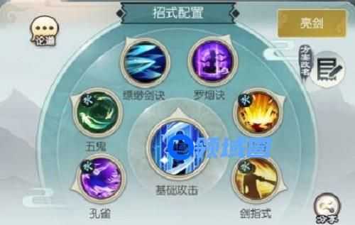 4、最基础的就是招式,排列顺序是 孔雀+五鬼+飘渺+罗烟+血炼+剑指/葵水(孔雀肯定要放在第一个,血炼可以换其它技能,剩下的技能最好不要变)基本上睁目常规就是闪三次,这套技能足矣一套带走对面了。