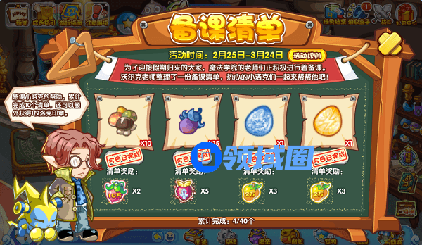2、为了迎接假期归来的大家,魔法学院的老师们正积极进行着备课。沃尔克老师整理了一份备课清单,热心的小洛克们一起来帮帮他吧!