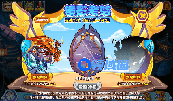 2、挑战成功获得1枚凤羽,用凤羽进行复原镜子上的所有裂缝即可获得进化资格。