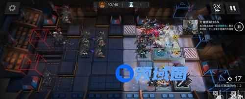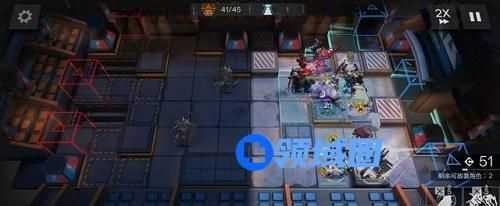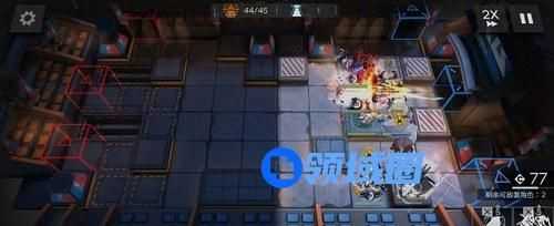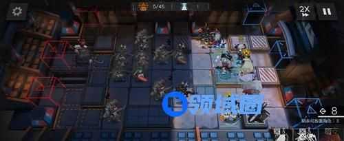 3、部署顺序很简单,开局部署桃金娘冲上攻击,然后部署红蒂冲上攻击,点灯开格子用的,很关键,然后部署山在下路冲左侧攻击,部署煌或者羽毛笔冲下方攻击,高台补夜莺冲上攻击,最后放塞妈冲上攻击。