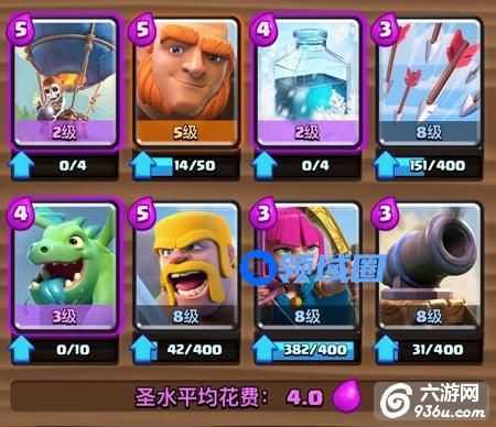 气球兵+巨人+冰冻法术+万箭齐发+飞龙宝宝+野蛮人+弓箭手+加农炮