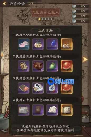 颜料由击败第二层和第三层的NPC获得,是使用概率获得物品奖励、及修成完成奖励