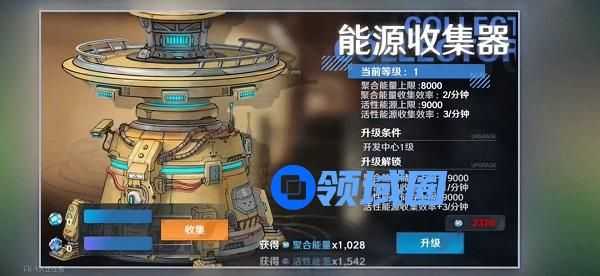 所有的升级材料都是通过能源收集器获取的,类似是自动挂机,我们不定期的进行收获即可,升级收集器可以提升储存上限和收集效率。