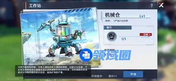 可以理解为挖矿机,需要智仆来操作,然后我们获得晶石奖励,可以成为我们后期晶石主要来源之一,升级机械仓可以增加矿物产量。